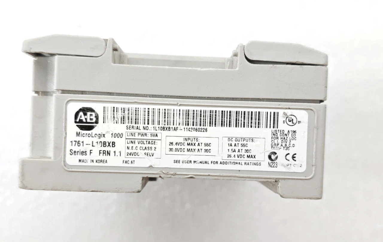 - Allen Bradley 1761-L10BXB Ser F MicroLogix 1000 24VDC Power 10-Pt I/O Controller