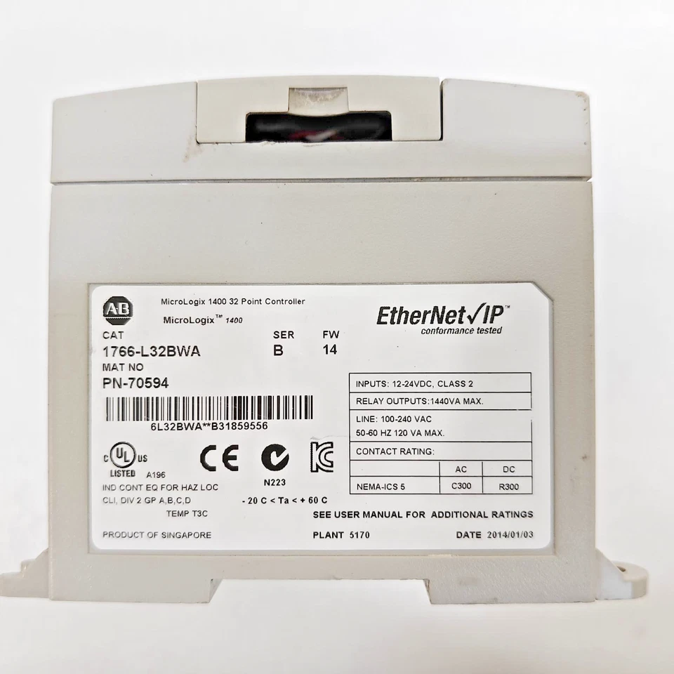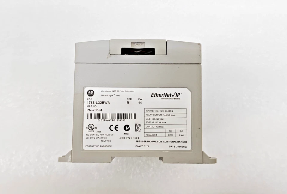 Allen Bradley 1766-L32BWA /A MicroLogix 1400 AC Power 32-Pt I/O Logic Controller